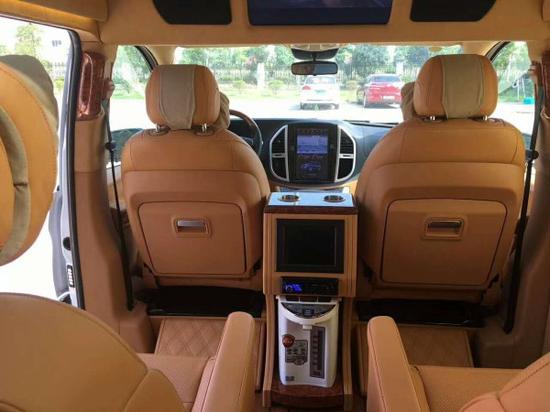 打开车门,首先看到的就是一体式豪华吧台——前后舱,内饰高光泽条木修饰和内饰壁灯、氛围灯。吧台享有迷你水晶酒柜,可放置美酒和酒杯,还有咖啡杯架。吧台独有的进口胶囊咖啡机,此时正好派上用场。闲暇时间,煮一杯咖啡,品人生之淡然。舱可拆卸小桌板,节约空间,随拆随用,可娱乐打牌、可商务办公。电动窗帘,车载冰箱空气净化器,220V电压插座,细节体现珍贵。触摸屏一键控制,告别手动,实现电器自动化控制。