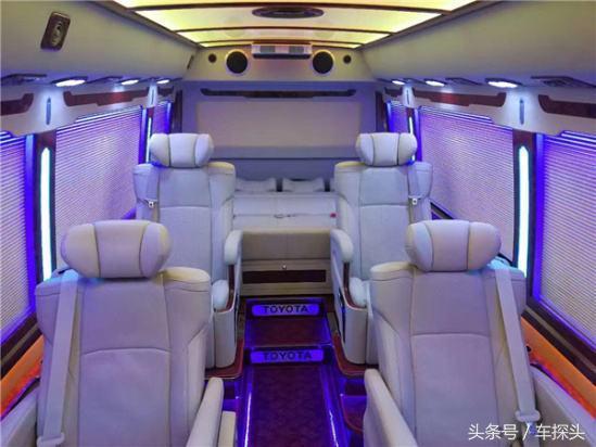 丰田考斯特有众多的人性化配备,包括电动伸缩踏板、高制冷可制冰的车载冰箱等等,舒适的航空座椅使旅途不再劳累。丰田考斯特新增了隔热隐私玻璃,各种镀铬装饰以及镀金标识,庄重感与豪华感油然而生。车内还配备了吸顶式电视,可以在车内打发闲暇的时间。