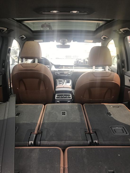 配 置 :奥迪Q7~黑棕:技术型(MMI导航,手写板,7座,真皮座椅,液晶仪表盘,前排电动座椅带加热通风,LED大灯,BOSE音响,前后座椅加热,方向盘加热,前后电眼,全景天窗,私密玻璃,铝制行李架,智能卡,无钥匙进入,巡航定速,360度环影,四区空调,并道,脚感电尾)、驾驶员助理包(带交通信号识别的车道保持系统,会车远光灯助理,摄像头及具体感应雷达)、动态悬挂包(运动空气悬挂,四辐方向盘,底盘升降