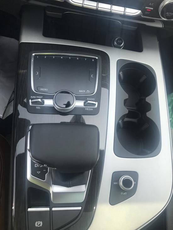 内饰方面:17款奥迪Q7的内饰造型是典型奥迪风格,材质高档、做工精细,真皮座椅和方向盘、深棕色木纹装饰的点缀都体现出了低调的豪华感。还有仪表盘的水滴造型很别致,中控台的功能键排列有序,在排挡杆的周边,布置了MMI多媒体交互系统和一键式启动按钮,体现出奥迪崇尚科技的一面。