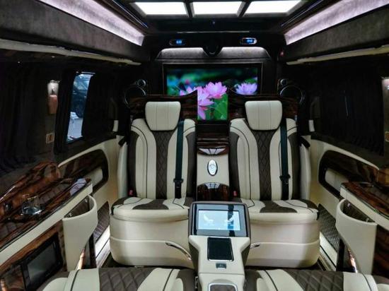 细节方面:奔驰V260在内部装潢上也进行升级,车体提供真皮、Alcantara以及木材和碳纤维多种材质可供选择。而MPV车型看中的合金踏板、合金门把手以及内装台板等这款车都有所配备。科技配置还有AppleTV、两个独立15.6英寸显示屏、蓝光播放器以及DVB-T信号接收系统等。