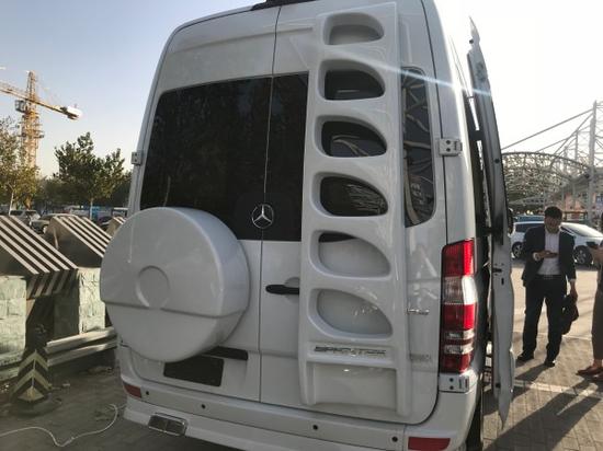 奔驰斯宾特配置:隐藏九座斯宾特:1。 前仓大容积冰箱可制冰保温(-18度到15度)2 。无线车载子母前后仓通讯电话3。 电动伸缩踏板4。 42寸高清电视5。隐藏式九座6.BOSE 5.1环绕立体音响7。尽显奢华的车顶及简洁别致的灯光8。增强隐私性的可升降液晶电视9。车载胶囊咖啡机及咖啡杯10。隐藏式一键展开圆桌11。 220V插座及USB插孔12。全仓实木地板13。双电瓶保护器14。镀铬进气格栅15。空气干湿度显示钟16。意大利中表示手工打造的镀金时钟17。后排可电动翻折平躺式真皮座椅18车外顶部的中央空调及信号接收器19。超大的驾驶仓 20。车载备胎