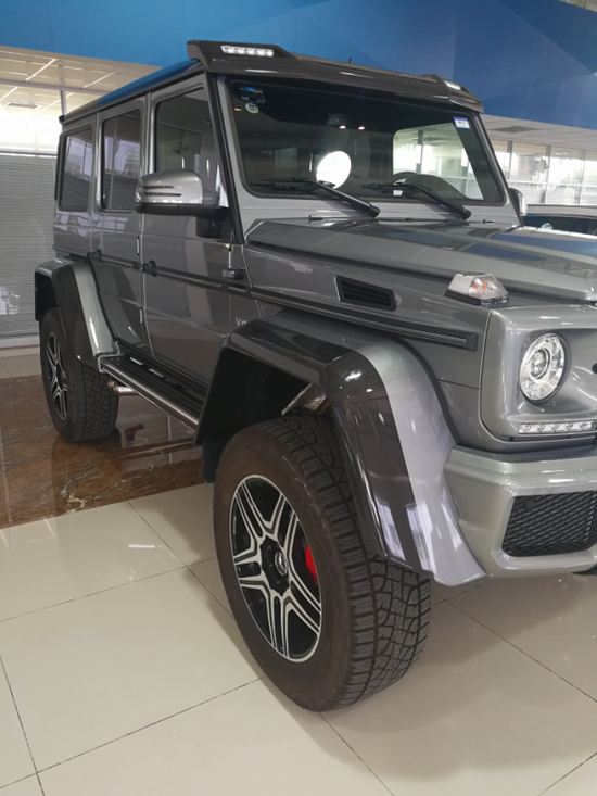 奔驰G500 4x4⊃2;改装很多人都会情不自禁竖起大拇指,它是越野车史上的经典传奇,保持着30多年来的不变面孔,被誉为越野领域的宗师。那种方方正正的设计风格让其在整个SUV市场拥有着非常明显的性格。17款奔驰G5004X4的底盘也基本是G63 AMG 6x6车型直接移植过来的,只不过少了一根轴而已,前后轴依旧保持了门式车桥的设计——这也是这款车最大的价值之一。要知道这种设计基本在军用车型中才会见到,比如乌尼莫克和悍马H1,而奔驰现在已经将其放在了G级车型上,性能可以随意想象了。配置:4.0T (汽油)V8发动机,7速,门式车桥,AMG包围,加高加宽的车身,氙灯,日行灯,黑色翻毛皮内顶,碳纤维内饰,前排座椅加热带通风,翻毛皮和真皮双拼座椅和方向盘,换挡拨片,座椅记忆,碳纤维轮眉,车顶碳纤维扰流板带LED上雾灯,黑色车顶,,不锈钢双车底保护,可调悬挂,22轮,前中后三把差速锁,哈曼音响,红卡钳,打孔刹车盘,小天窗, 倒影,踏板。[更多优惠见文章底部联系电话]