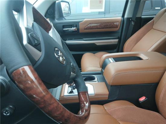内饰方面:17款丰田坦途的内饰做工十分精致,真皮座椅、桃木的方向盘、动感仪表盘,在简约的同时,透露着稳重与典雅的气息。仪表盘几乎颠覆了之前的全部设计,造型极为新颖。换挡杆造型没有变化,中央扶手箱的凹槽可以存放手机等杂物。