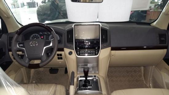 2017款丰田兰德酷路泽4000中东版仪表盘、方向盘和排挡等位置均配以桃木装点,尽显豪华质感。操控台没有过于繁杂的操控按钮,但却凝结了型在简洁之间将所有功能集结于其中的驾驶乐趣。可以让我们尽情感受它的高贵华丽,方向盘经过桃木饰板的点缀的确提升了视觉档次,多功能按键布局依旧没变。