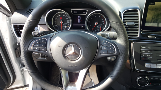 内饰方面:17款奔驰GLE400四辐式真皮包裹多功能方向盘是新的家族式设计,内饰真正的突破在于用料更高档。整个内饰氛围变得更显豪华质感,相对简约的功能按键设计,也令操作更加简便。