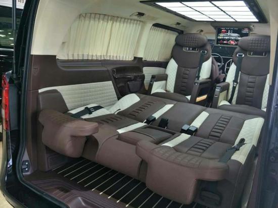 2017款奔驰V250在内部装潢上也进行升级,车体提供真皮、Alcantara以及木材和碳纤维多种材质可供选择。而MPV车型看中的合金踏板、合金门把手以及内装台板等这款车都有所配备。科技配置还有AppleTV、两个独立15.6英寸显示屏、蓝光播放器以及DVB-T信号接收系统等。