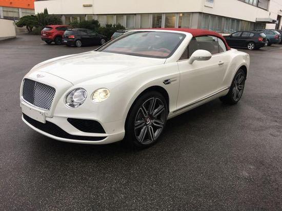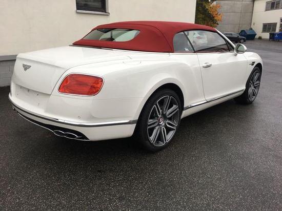 配置17款宾利欧陆 4.0T GTC 敞篷:冰川白/红色双拼,舒适包(前通风座椅)、GT穆勒独家座椅,穆勒驾驶包21轮、对比缝线、座椅刺绣、倒影、厚脚垫。