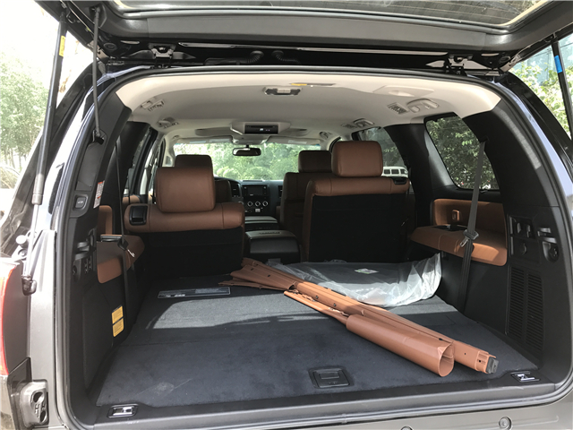2017款丰田红杉5.7内部空间采纳了符合人体工学的设计理念,同时还运用了高品格的内装材质,中控台被银色和黑色朋分成了两部份,从而让驾驶者更轻易操控。接纳了合适人体工学的计划理念同时还利用了高品格的内装材质,使得红杉在任何路况下都能所向无敌,勇敢非常。双侧的玻璃接纳是单向透光的玻璃,增长了车内搭客的私密性。真皮影象电动座椅带通风加热,吸顶DVD,遥控启动,JBL高级环抱立体音响等等又将红杉内部奢华展示的极尽描摹。