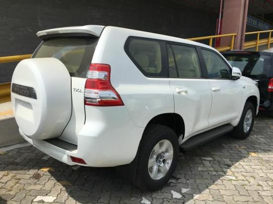 [天津港行情]近日鸿帆国际汽车贸易有限公司17款丰田普拉多 (配置|询价)4000中东TXL现车到店, 无限自由轻松拥有,17款丰田普拉多4000中东TXL前脸的大嘴相当霸气,整车线条更偏圆滑,更为流畅。LED灯的U形设计方方正正、棱角分明,对大灯灯腔加入了更多细节上的表现,下方增加了LED日间行车灯,更好的体现了自身高端科技的一面。当天办理临时牌照(节假日不休)本店考虑到外地客户来京购车路途遥远,可报销来京单程路费[火车票、高铁票、飞机票(限两人票据)]欢迎到店试乘试驾、莅临鉴赏!