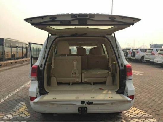 2017款酷路泽4600EXR气泵版 珍白色,7座,蠕行系统,8气囊,主驾驶电动座椅,中央差速锁,天窗,丝绒座椅,桃木内饰,桃木多功能方向盘,冰箱,智能卡,一键式启动,遥控启动,巡航,触摸大屏,迎宾灯,倒影,自动空调,气泵,蓝牙,坡道辅助,氙灯LED,285-18轮毂,脚踏,前二后四电眼,5速,拖钩,银色行李架,雾灯,双油底挂,灰色亮条中网,胎压监测,脚垫,冲沙旗,三脚架,灭火器,烟缸 等