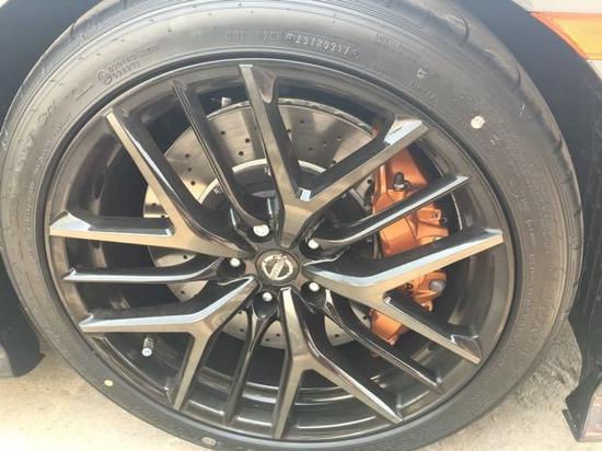 它的刹车套件和轮胎与2010款完全一致。刹车套件由brembo公司代工,以前6活塞、后4塞卡钳和面积为390mm的通风刹车盘来提供强大的制动力。至于轮胎方面,它依然是使用了邓禄普运动旗舰型轮胎,前轮尺寸为255/40 ZRF20,后轮尺寸为285/35 ZRF20,宽大而且扁平率高的运动轮胎无疑为它提供了更好的抓地力和操控性,也足够应付发动机输出的强大扭力。另外,有一点不得不提的是:2012款GT-R的哑光黑轮毂已经更换为更显动感和力量感的铝合金轮毂,这对于增强整车的视觉效果起着重要的作用。