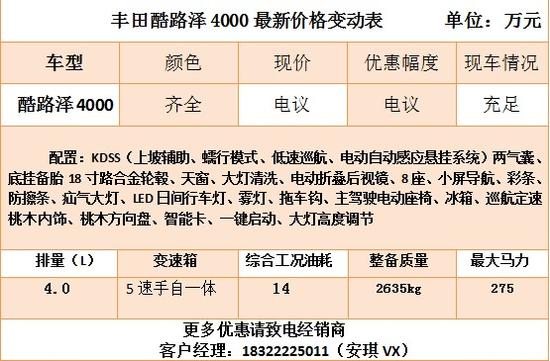 近期据小编所知,天津圣恩进口贸易公司店内17款/18款兰德酷路泽4000超值优惠限时秒杀,现车特价,直降3万元,网站客户购车可享折上折优惠价,热销全国享受批发价,当日提车开票,拒绝虚假报价,诚信为先,全国购车皆可办理分期付款。实在靠谱价格,保证原车进口,无任何其他附加费用,底价回馈新老客户,千载难逢的购车好机会,千万不要错过。感兴趣的网友不防关注一下(商家电话在最下方↓)。