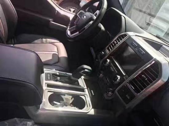 细节方面:作为福特皮卡系列中最畅销的车型拥有着极富侵略性的前脸。两根粗大的铬条中央悬挂着大尺寸的福特标志,威慑万分。加版F150拥有着极富侵略性的前脸,占据车头大半部分的亚光黑进气格栅以及格栅中隐约可见的福特LOGO都显示着其运动的特质。车身上看不到精致浮华的装饰,取而代之的是庞大的车身与粗犷的线条。对开式车门又显得它与其它越野车的不同,采用了高强度钢板增强底盘的强度。