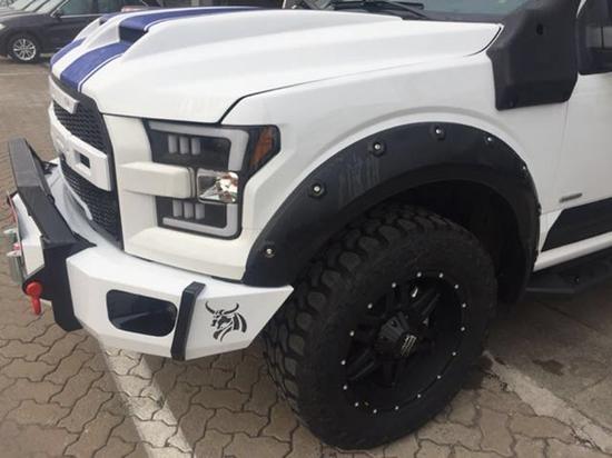 外观方面:17款福特猛禽F150它的特立独行,不跟随与大多数车型的流线型车身,福特猛禽F150将近两米的高度让我真有种一览众山小的感觉。鱼鳃状的引擎盖散热孔并不是完全打通的,巨大的长方体蜂窝式格栅中间镶嵌着福特的大标,再加上全新设计的保险杠和发动机舱盖,使车头拥有了震撼的冲击感。
