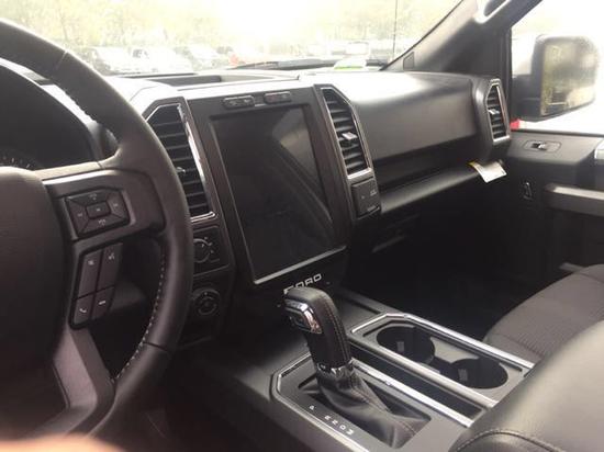 内饰方面:17款福特猛禽F150配备标准独特的皮革和布艺装饰的座椅,驾驶员侧的电动十向调节。这些座椅同时具备记忆功能。猛禽的内饰采用独特的中控台和门饰板面漆和真皮包裹的方向盘。猛禽可以单独选装豪华套装,豪华套装中包括了大量的舒适性的技术,比如:座椅的通风加热等。