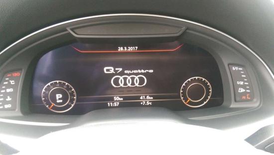 17款奥迪Q7内饰也彻底贯彻了奥迪科技生活的理念,全数字化液晶仪表盘,多功能方向盘、全新电子挡把、带有大尺寸手写板的MMI系统一应俱全。仪表台做工十分精细,各相关接缝均匀,与车门处的间隙合理。