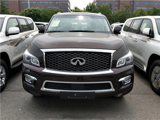 17款中东版英菲尼迪QX80 颜色:外观白 黑 棕/内饰棕或米 5.6排量v8、398马力、7速、全时四驱、拖车模式、雪地模式、多功能方向盘、一键启动、无钥匙进入、nappa真皮内饰、nappa真皮座椅、主驾座椅记忆、主副8项电动座椅、腰部支撑、触摸大屏、自动空调、钟表、座椅加热、天窗、自动防炫目后视镜、桃木内饰、电动尾门、冰箱、后排自动空调、后娱、第三排座椅电动收放、隐藏脱钩、前后电眼8个、led大灯、led日行灯、自动大灯、22轮、环影、胎压、8气囊、定速巡航、行李架、方向盘电动调节、大灯随动转向
