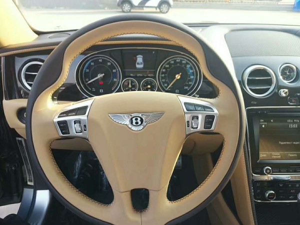 17款宾利飞驰外观,能感受到飞驰奢华的用料以及优异的工艺水准。飞驰的中控台造型更偏复古,而用料则是这台车最大的亮点。中控台大面积的胡桃木饰板仿佛玉石一般润泽,让人非常舒心。三幅式方向盘由胡桃木与真皮组成,握感相当棒。仪表盘内使用了大量的镀铬边框,表盘设计较为复古。推拉式的空调出风口,开闭之间的阻尼适中,手感很棒,精致的镀铬工艺及造型更是让人欲罢不能。