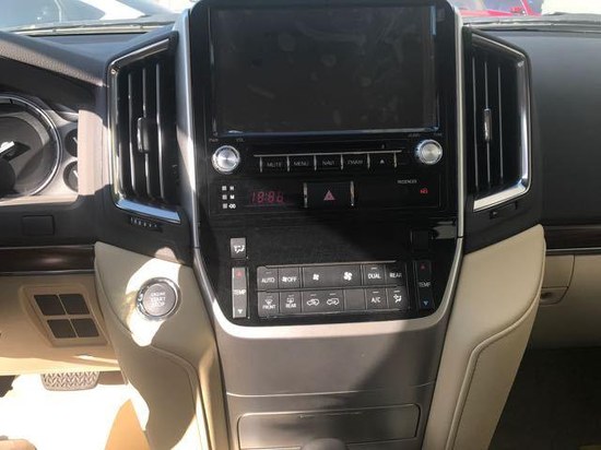 17款丰田酷路泽5700整个操控区域色调为 深色系,仪表盘、方向盘和排挡等位置均配以桃木装 点,尽显豪华质感。不但具有DVD导航,这款车的倒车 影像还可以显示在内后视镜上;中央扶手箱还装备了冷藏箱,这些都与中规版车型有所不同。17款丰田兰德酷路泽5700在中控台的面板换成与内饰新色系更搭的黑色钢琴烤漆材质,真皮座椅与桃木内饰的搭配使整个车内更显高贵。