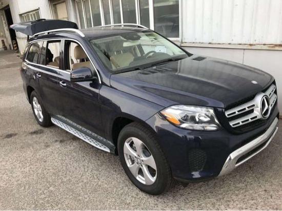17款美规奔驰GLS450蓝/米咖,配置:金属漆、P01、发光奔驰标、加热方向盘、小天窗、拖车钩、按木内饰、哈曼卡顿音响、脚踏板、二排方便进入、后娱预留、停车辅助包(环影、前后电眼)、车道保持