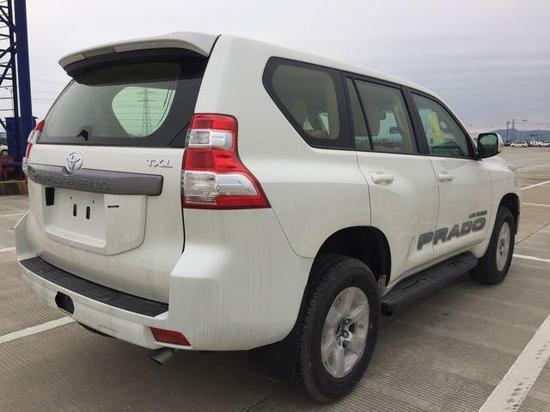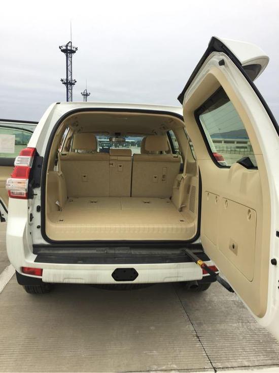 配置:17款霸道2700,白/米,底挂,17寸铝轮,多功能蓝牙方向盘,冰箱,前排座椅手动,发动机防盗,显屏,7座椅,织布座椅,地毯,扰流尾翼,遥控车锁,可折叠后视镜。此款车型为本公司最新到店车型,九月份报关,生产日期最新。