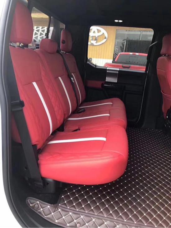 17款福特F150猛禽接纳带电冷热功效的可影象式皮革座椅,头枕四向可调,搭配铝饰条和玄色钢琴烤漆内饰。可电动起落的后窗带隔板和电热除霜功效。福特F150后排的坐位三个过分宽阔,乘坐四个身体高峻的搭客绝对没题目。