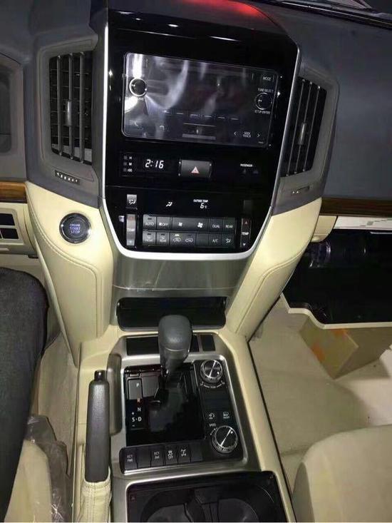 内饰方面:2017款丰田酷路泽4000大量泛金属光泽饰条的采用,大大增强了运动感和时尚感, 同时8英寸多功能信息显示屏、一键式启动按键的出现,也让兰德酷路泽的科技感十足, 比上一代大量桃木装饰的风格明显增强了时代感。
