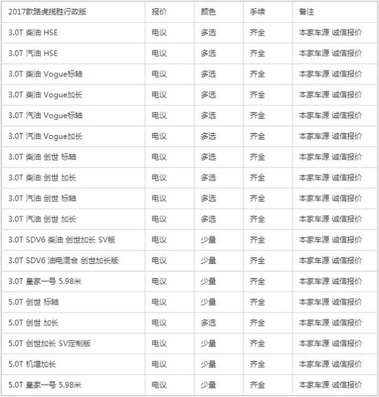 2017款路虎揽胜 (配置|询价)行政是路虎旗下的高端豪华品牌,霸气的外形和奢华的内饰设计让其成为SUV领域的豪华标杆级产品。强劲的动力对于喜欢越野和SUV的人来说,这种诱惑是抵挡不住的。新款揽胜行政在保留了之前车型身上硬朗的线条,并且许多局部设计都做出了改进,足矣满足您更多的视觉欲望。