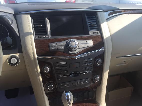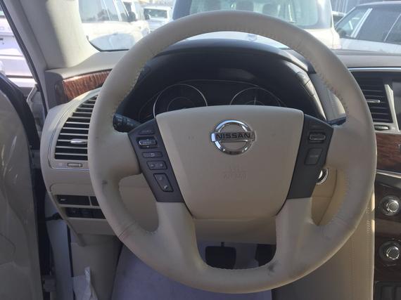 2017款尼桑途乐内饰风格仍然延续了日产家居化的设计,以浅色调为主,营造出了轻松惬意的驾驶环境。依旧为三排座车型,舒适、豪华。日产途乐采用了豪华轿车惯用的四幅风向盘设计,粗细比较合手再加上真皮加实木的用料,手握感觉极佳。另外方向盘功能强大,集成了音响、空调控制,使驾驶者在行车中更为安全,做到手不离方向盘。