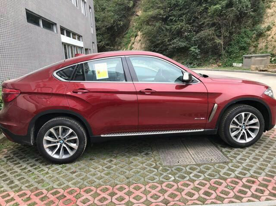 备胎宝马X6 17款 3.0T Extravagance 墨西哥版现车|红/黑 奢华风格套件外观包(镀铬进气格栅/镀铬下进气口/镀铬后视镜/镀铬后杠) 胡桃木内饰 天窗 自适应氙灯 大灯清洗装置 LED前雾灯 19寸Y型轮毂 防爆轮胎 备胎 防盗轮锁 铝制侧踏板 前后驻车雷达 倒车影像 体感电动尾门 自动变光后视镜 速敏多功能运动方向盘带换挡拨片 多功能液晶仪表 巡航控制 三色可调内部氛围灯 10.2英寸大屏导航 8速手自一体M型运动变速箱(新增SPORT+超级驾驶模式) Dakota真皮 电动可调前排座椅(驾驶员座椅记忆组件) Hi-Fi高级音响 原厂脚垫 现车