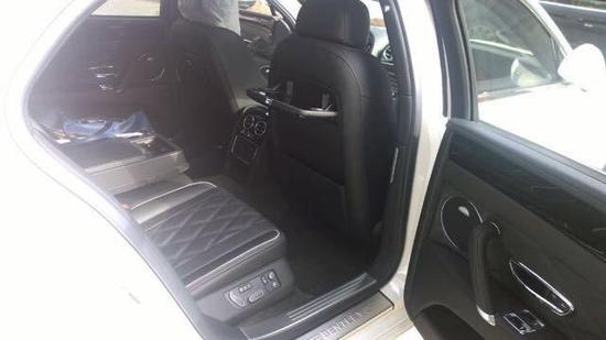 配置:天窗,(前后排座椅加热,记忆,多项电动调节,前排双扶手箱,宝石油箱盖,机油箱盖,21寸轮毂,小桌板)熏黑色彩包(定制熏黑前后大灯,熏黑中网及下边网,,熏黑外后视镜,红色卡钳),4座商务设计,定制头枕宾利LOGO和V8S LOGO刺绣徽章。倒车影像,智能钥匙,电尾,电吸门,前后电眼,氙灯LED日间行车灯。