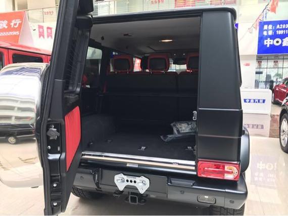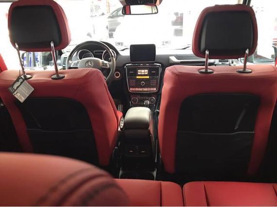 奔驰G550内饰采用黑色真皮运动座椅,后排座椅可以任意折叠,折叠后,可得到更宽敞的储物空间。奔驰G550实用性为导向的车身线条比例匀称,清晰地勾勒出奔驰G500硬朗的外形气质。奔驰G550可以自行调教的空气悬挂并且拥有舒适和运动模式,奔驰的Command系统全时四轮驱动系统、四轮驱动的电子牵引系统(4ETS)、同步啮合分动箱、三个全锁止式差速锁等各个系统和功能相互配合,共同实现强大全面的越野性能,电动座椅调节,前保险杠,完全突出G550这个硬汉形象。