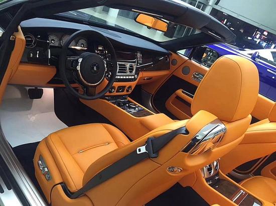 2017款劳斯莱斯曜影内饰只有选择大面积的实木材质装饰才对味道,高贵气质扑面而来,方向盘的设计亮点在于精致ID细节点缀,看上去非常高贵大方,但又不至于显得浮夸。传统的仪表盘造型设计,配以纯白色让它显得十分醒目。科技配置和功能一向不是劳斯莱斯的卖点,细腻和精致的质感才是曜影被赋予的最大杀伤性武器。