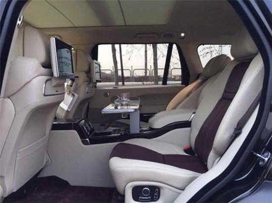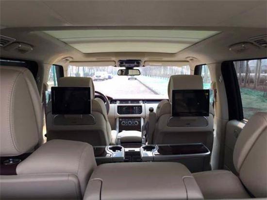 17款路虎揽胜巅峰创世加长版配置:550马力、全景天窗、二代地形、4座、氙灯LED、22轮、1700音响、26向座椅调节、飞翼头枕、前后座椅加热通风按摩、木质方向盘加热、360度环影、电吸门、雷测、无钥匙进入、盲点监测、脚感电尾、冰箱、抬显、后娱、电动游艇拖钩、SV配置及标识
