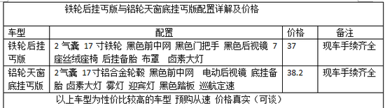 免责声明:以上购车优惠信息由新浪网综合经销商提供,由于行情因素价格浮动较大,仅供购车参考;其真实性、准确性及合法性由经销商负责,本网不提供任何保证,亦不承担任何法律责任。