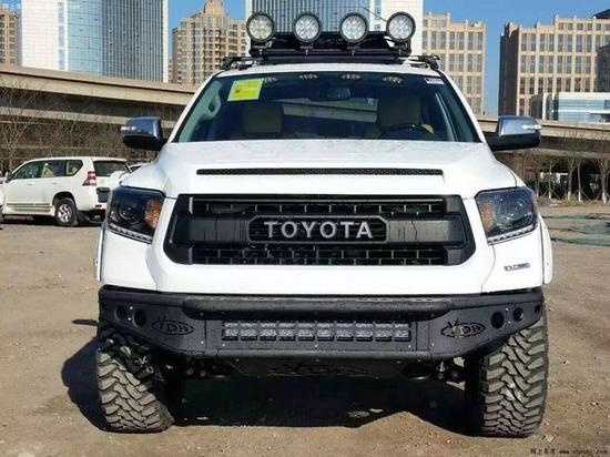[天津最新行情] 17款丰田坦途皮卡整车线条设计比较简洁,并没有过多的去为了突出线条结构,保持了丰田家族的一贯风格。宽大硬朗的车身,凸显美国车的风范,前脸明显外张的挡泥板以及前突的坚固格栅尽现强悍风格,视觉上极富冲击力。采用了四驱系统,随时切换模式,根据不同的状况切换不同的模式。而高大的车身也能完全能让那些路上平时很嚣张的高档SUV产生一股莫名的紧张感。