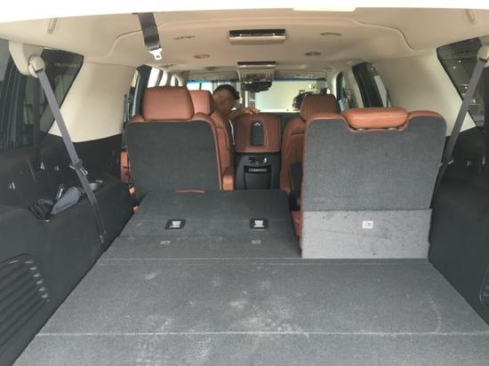 17款凯迪拉克凯雷德以及能轻松容纳七个超豪华舒适座椅的超尺寸座舱空间。同时,它还拥有超大、灵活的储物和行李箱空间,满足车主的各种出行需求。凯雷德ESV铂金版拥有1,297升宽大后备箱空间,并且通过放倒第二和三排座椅,可以最大获得3,891升的超大置物空间,足以放置中长途旅行的各种装备。