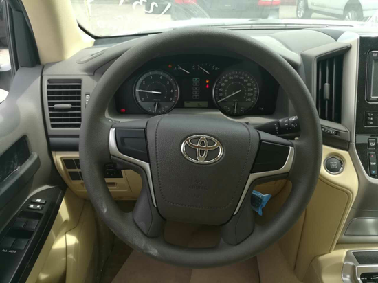 内饰方面:17款丰田霸道4000天窗版人机工程学应用的非常到位,粗大的方向盘在越野时非常好用,各功能区布置合理,按键的阻尼和手感都非常好。没有太多的修饰,方向盘很大,握上去手感很舒服,快捷键很方便也很简洁,副驾驶车门的储物槽同样很大,轻松放下两瓶瓶水是不存在问题的。17款丰田酷路泽4000操控台没有过于繁杂的操控按钮,多功能方向盘方便了驾驶员的操控,轻松驾驶。中控台换成了具有磨沙手感的金属板件,增强了内饰的质感。上方为多功能显示屏,中间为音响控制系统,左右两侧为空调出风口和空调温度控制按键。
