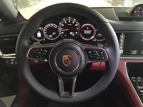 2017款保时捷帕纳梅拉五环式仪表盘,具有液晶显示屏的行车电脑显示功能,超大液晶显示屏配有倒车雷达模拟图像。还有可以在每个弹簧中按需提供额外充气量的气动悬挂系统,可自动升起且角度可调的后扰流板,确保了主动空气动力学性能。