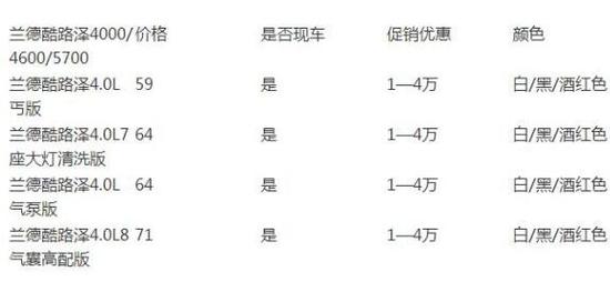 17款中东丐酷4000:(兰德酷路泽4000)两气,5座,17铁轮,冰箱,驾驶座电动座椅,定速巡航,镀铬黑色隔栅,彩条,多地形反馈,电子制动力分配,刹车辅助,车身稳定系统,蠕行模式,低速巡航,上坡辅助,牵引力控制,胎压监测,侧防撞条,高位刹车灯,电动彩色后视镜,彩色门把手,防眩目内后视镜,智能卡,一键启动,门槛照明,后雾灯,脱钩,底挂,脚垫。