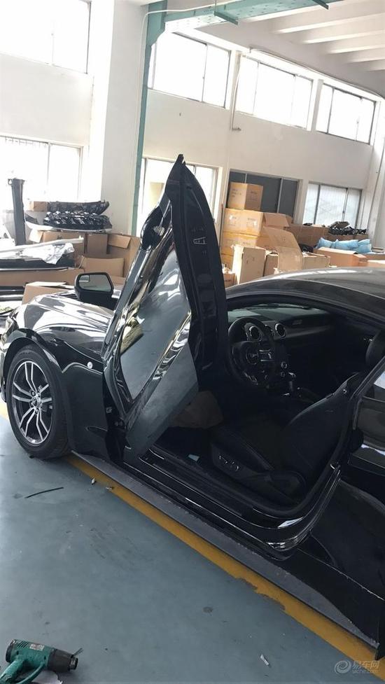 在改装厂改剪刀门的野马 ,是不是有点山寨!