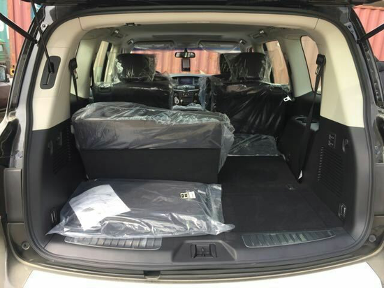座椅方面:2017款英菲尼迪QX80前两排座椅为乘客提供了顶级的舒适性,抛开轴距长度来说,它的第二排乘客腿部空间是同级别中最为优秀的。与第二排相比,第三排的座椅空间并没有那么出色,但是仍比凯雷德要更为宽敞,乘坐舒适性也要更胜一筹