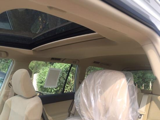 17款丰田霸道2700配置:两气囊、天窗、17寸铝合金轮毂、底挂备胎、卤素大灯、黑色前中网 后视镜 门把手、踏板、多功能方向盘、中控CD、7座丝绒座椅、胎压监测、车身稳定系统。