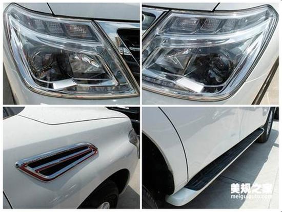 外观方面:18款尼桑途乐新车前脸打击感强,而且18款途乐采用了和车身同色的后视镜,不再是17款的黑色后视镜了,中网面积占领了整个前脸,并加之了镀铬装饰,营造出 了日产家族式前脸。采取了4活塞卡钳高机能前制动体系,大大晋升了途乐的宁静机能。尼桑途乐绝对 可以称得上是一个大师伙,特别是快要5.2米的车身长度,会让您感受驾驭它具备强盛的征服欲。