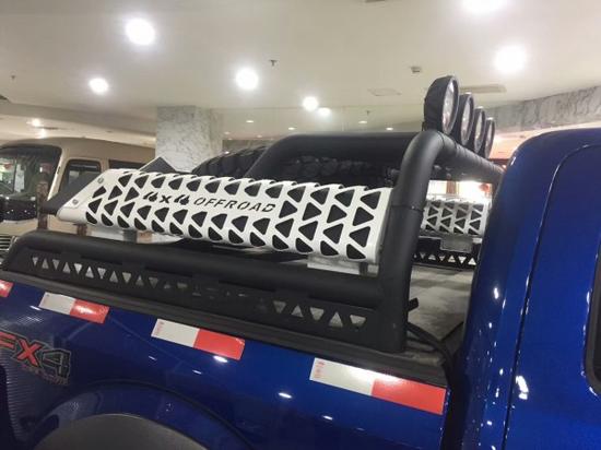配置:301A(4.2寸仪表显示屏。倒车影像 真皮方向盘 后窗隐私玻璃,多功能方向盘 倒车镜加热 拖车辅助 ) ️ XLT运动包( 踏板条,带黑色网眼光亮进气格栅,光亮前拖钩,带车身同色边框的镀铬门把手,带车身同色边框的镀铬尾门把手,光亮的单排气管,18寸全地形轮胎) ️ FX4越野包(坡道辅助,差速锁,发动机防撞护板)双天窗,SYNC3大屏,110V400W电源