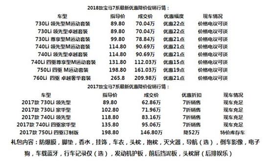 [2017-11-22日]近日,编辑从天津炫疆宝马店获息,店内全新宝马7系 (配置|询价)限时特价优惠促销,2018新款宝马7系全系超低价格。北京2018新款宝马7系现车火热销售[本店现车均为国五V排放标准,全国可正常上牌落户,部分车型特价优惠65万]北京2018新款宝马7系报价,北京2018新款宝马7系优惠促销,北京2018新款宝马7系颜色,北京2018新款宝马7系降价,2018新款宝马7系哪家最便宜,北京2018新款宝马7系现车充足,无区域限制,全国联保。郑重声明:本店购车当天办齐新车所有手续,发票、关单、车辆信息表、三包凭证,一致性证书、保养手册、首保卡等。本店新车价格透明,无隐性消费,一对一专属服务。车辆相关手续全部随车,无任何附加费用。全新宝马7系重新定义豪华尊贵。[查看新闻最下面宝马4S店联系电话]