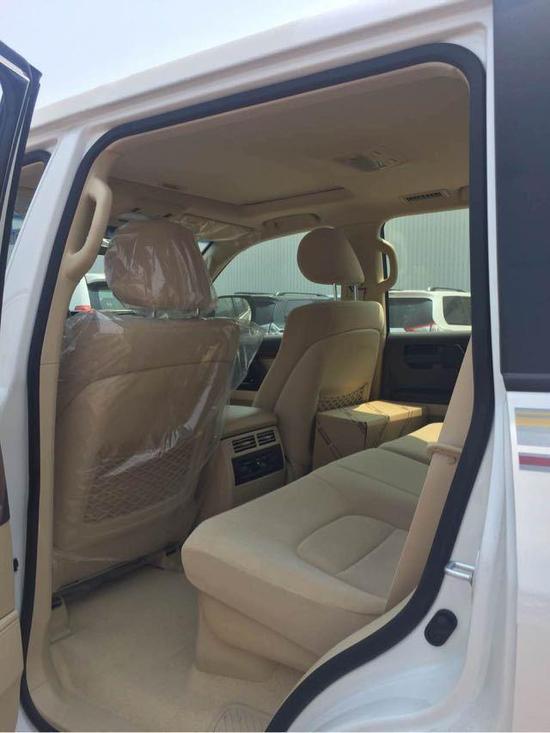 17款中东版丰田兰德酷路泽4000优惠销售,现车充足,颜色齐全。2017款丰田酷路泽4000中控台换成了具有磨沙手感的金属板件,增强了内饰的质感。在仪表盘方面也并无变化,双炮筒式的结构加上红线元素酷劲十足,信息量也十分清晰。整体内饰设计,更是充分满足了消费者对高端SUV内部空间的更高要求。