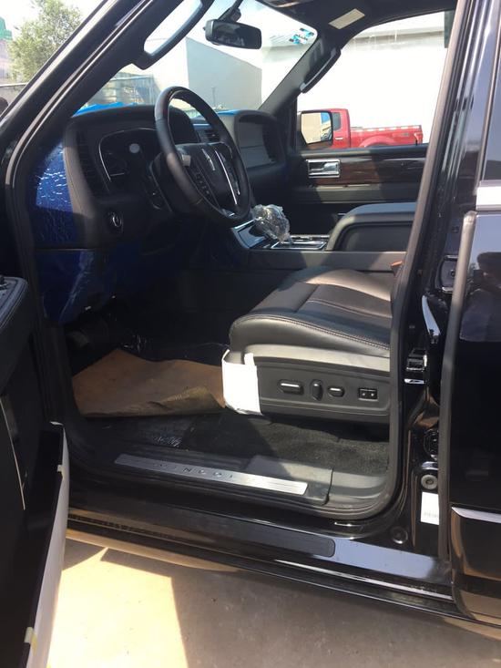 17款加拿大版林肯领航员长轴:黑/黑,20轮,5.7米(在前车门下方有LTZ标志), 3.5TT V6 ECOBOOST 378马力 7座, 2排扶手箱 6速自动挡 、电动脚踏,前后电眼及倒影、LED氙灯(氙灯是白光,更亮更接近自然光,卤素大灯是黄光,亮度低)、20轮、自动空调带后排控制、真皮座椅、前座椅通风加热、主驾驶10项电动调节带记忆和腰部支撑、二排座椅加热、三排全电动座椅!真皮包裹桃木方向盘、电动天窗、语音激活导航、后窗除霜、电动后尾门,高级THXII音响系统,盲点监测,一键启动,110V交流电源插座!