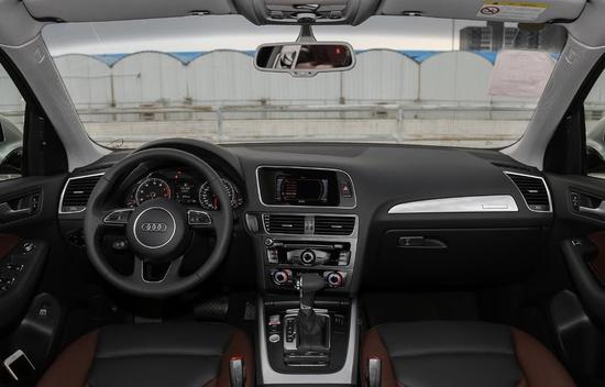 内饰方面,奥迪的内饰风格已经非常熟悉了,精致而富有品味几乎成了它的代名词,Q5自然也不例外。哑光质感的桃木条显的高档而不庸俗,感觉坐进Q5不像坐进了SUV,而是坐在一辆豪华轿车里面。Q5的中控台则采用驾驶者导向设计,位于中控台最上部的MMI系统大型液晶显示屏,奥迪迷就最熟识不过了。三幅式 的方向盘握感极佳,仪表盘的中央行车信息显示屏为彩色设计,看起来更加多样化。
